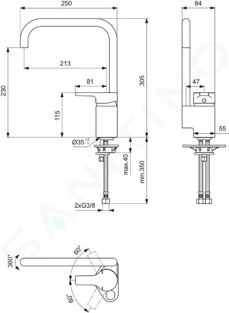 Kuchyňská baterie s vysokým výtokem, otočným ramenem a skrytým perlátorem