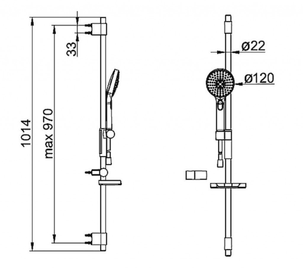 Ruční sprcha se třemi druhy proudu, hadicí a tyčí