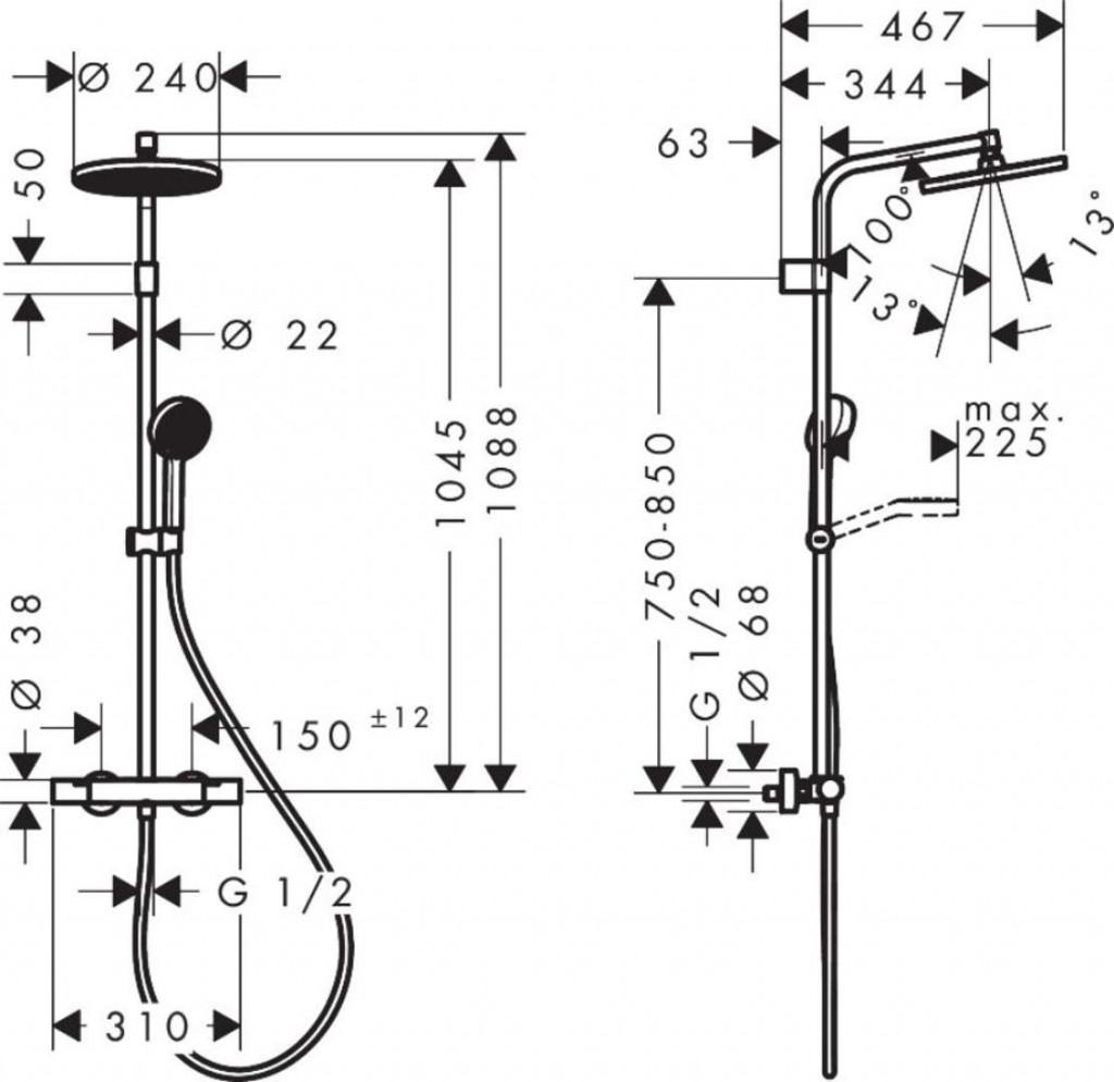 Sprchový set Activera S Showerpipe 240 1jet EcoSmart s termostatem Ecostat Fine Varia
