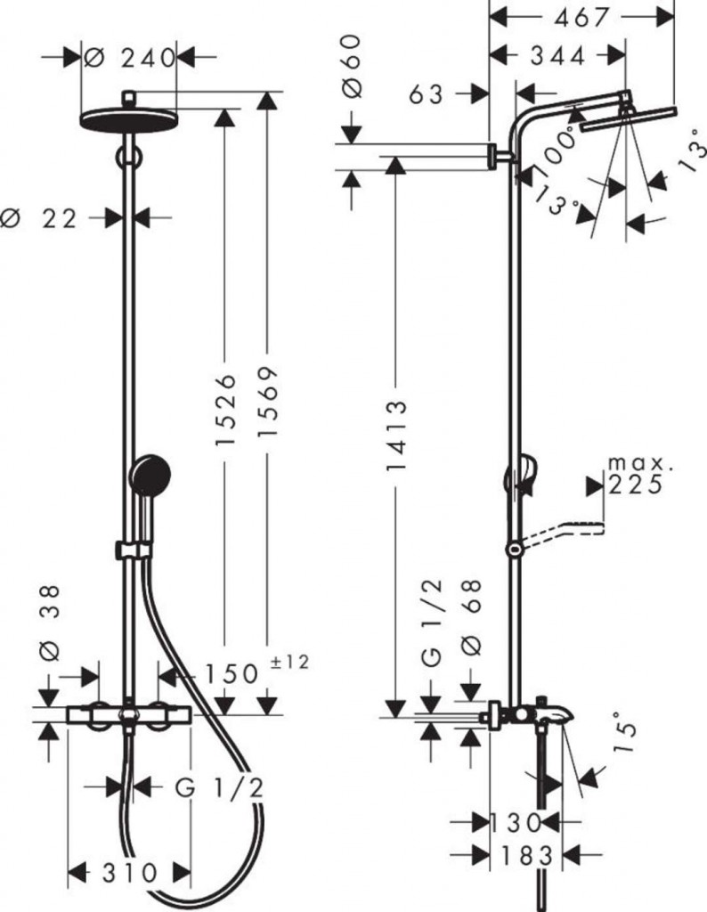 - délka ramena sprchy: 344 mm