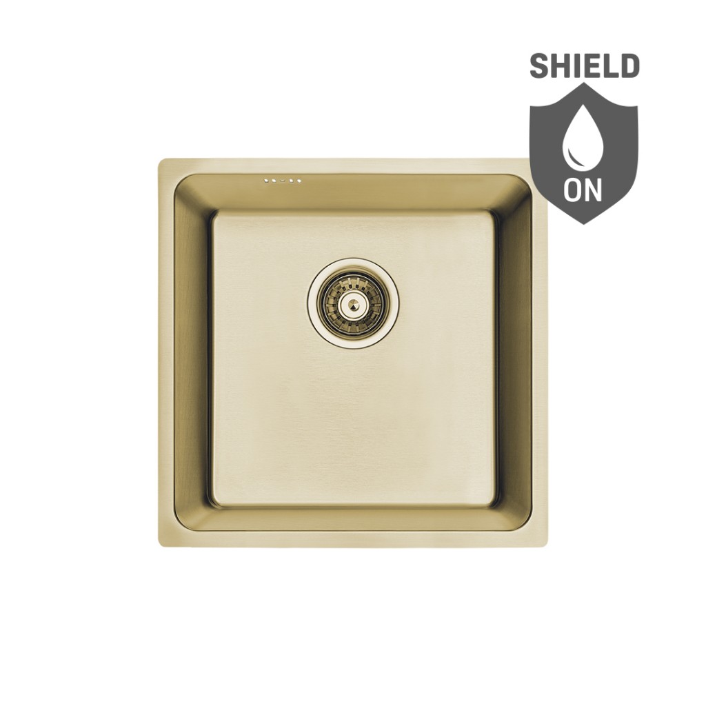 Dřezy Aden jsou dostupné v rozměrech 44x38, 44x44 a 44x54 cm a v barevných variantách: nerezová ocel, grafit, měď a zlato.