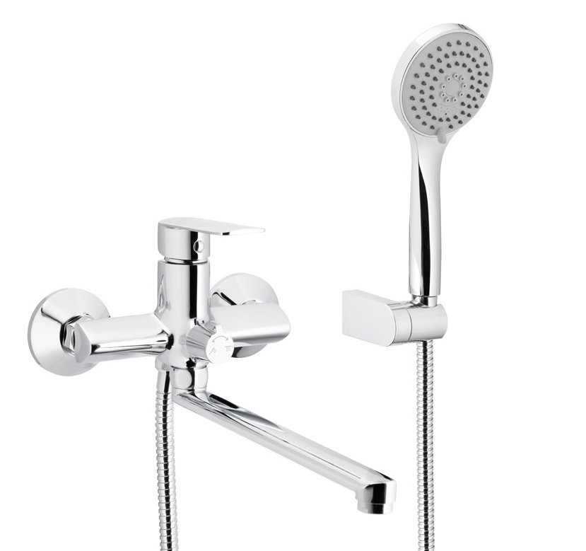 Nástěnná vanová baterie AGAT od výrobce KFA ARMATURA s roztečí 150 mm. Velkou výhodou je otočné ramínko o délce 322 mm, kdy výtokové ramínko dosáhne do umyvadla, stejně jako do vany. A právě tím, že nepotřebujete dvě samostatné baterie, šetříte tolik potřebné místo.