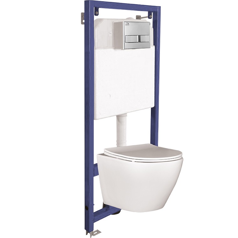 Skrytý rám Akan pro lehkou konstrukci. Tento rám je určen pro závěsnou toaletu, kterou lze zakoupit jako sadu nebo samostatně. Dále si můžete zakoupit rám bez tlačítka nebo s horizontálním tlačítkem, dostupný ve čtyřech různých povrchových úpravách. Rám řady Akan je vhodný pro montáž na stěnu nebo na sloupky. Jeho nosnost je 400 kg. Použité materiály jej účinně odhlučňují. Tichý napouštěcí ventil zabraňuje kondenzaci. Možná je i rohová instalace. Součástí dodávky je horizontální tlačítko, které je dvoudílné a nádržka se aktivuje zepředu. Vestavěný dávkovač umožňuje nízké splachování s nastavitelným objemem od 3 do 6 litrů. Desna je závěsná toaleta s roztečí otvorů 18 cm a bez viditelných montážních prvků po stranách. Bezokrajový design usnadňuje údržbu. Další výhodou mísy je její nadčasový vzhled. Bílý prvek se vyznačuje zajímavým tvarem, díky čemuž je perfektním doplňkem každé moderní koupelny. Mísa je dodávána se sedátkem s odolnými panty s mechanismem tlumeného dovírání a rychloupínacím systémem. Tento model je vyroben z mimořádně odolného plastu – Duroplastu odolného proti poškrábání a změně barvy. Tato konstrukce pantů eliminuje hlasitý hluk při zavírání víka a poškození způsobené silným nárazem na okraj toaletní mísy. Závěsný model má robustní konstrukci, což zvyšuje komfort vaší koupelny.