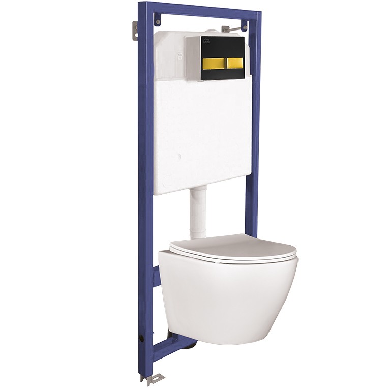 Skrytý rám Akan pro lehkou konstrukci. Tento rám je určen pro závěsnou toaletu, kterou lze zakoupit jako sadu nebo samostatně. Dále si můžete zakoupit rám bez tlačítka nebo s horizontálním tlačítkem, dostupný ve čtyřech různých povrchových úpravách. Rám řady Akan je vhodný pro montáž na stěnu nebo na sloupky. Jeho nosnost je 400 kg. Použité materiály jej účinně odhlučňují. Tichý napouštěcí ventil zabraňuje kondenzaci. Možná je i rohová instalace. Součástí dodávky je horizontální tlačítko, které je dvoudílné a nádržka se aktivuje zepředu. Vestavěný dávkovač umožňuje nízké splachování s nastavitelným objemem od 3 do 6 litrů. Desna je závěsná toaleta s roztečí otvorů 18 cm a bez viditelných montážních prvků po stranách. Bezokrajový design usnadňuje údržbu. Další výhodou mísy je její nadčasový vzhled. Bílý prvek se vyznačuje zajímavým tvarem, díky čemuž je perfektním doplňkem každé moderní koupelny. Mísa je dodávána se sedátkem s odolnými panty s mechanismem tlumeného dovírání a rychloupínacím systémem. Tento model je vyroben z mimořádně odolného plastu – Duroplastu odolného proti poškrábání a změně barvy. Tato konstrukce pantů eliminuje hlasitý hluk při zavírání víka a poškození způsobené silným nárazem na okraj toaletní mísy. Závěsný model má robustní konstrukci, což zvyšuje komfort vaší koupelny.