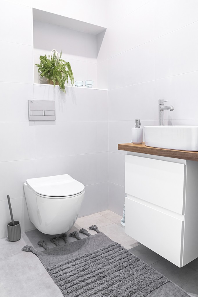 Skrytý rám Akan pro lehkou konstrukci. Tento rám je určen pro závěsnou toaletu, kterou lze zakoupit jako sadu nebo samostatně. Dále si můžete zakoupit rám bez tlačítka nebo s horizontálním tlačítkem, dostupný ve čtyřech různých povrchových úpravách. Rám řady Akan je vhodný pro montáž na stěnu nebo na sloupky. Jeho nosnost je 400 kg. Použité materiály jej účinně odhlučňují. Tichý napouštěcí ventil zabraňuje kondenzaci. Možná je i rohová instalace. Součástí dodávky je horizontální tlačítko, které je dvoudílné a nádržka se aktivuje zepředu. Vestavěný dávkovač umožňuje nízké splachování s nastavitelným objemem od 3 do 6 litrů. Desna je závěsná toaleta s roztečí otvorů 18 cm a bez viditelných montážních prvků po stranách. Bezokrajový design usnadňuje údržbu. Další výhodou mísy je její nadčasový vzhled. Bílý prvek se vyznačuje zajímavým tvarem, díky čemuž je perfektním doplňkem každé moderní koupelny. Mísa je dodávána se sedátkem s odolnými panty s mechanismem tlumeného dovírání a rychloupínacím systémem. Tento model je vyroben z mimořádně odolného plastu – Duroplastu odolného proti poškrábání a změně barvy. Tato konstrukce pantů eliminuje hlasitý hluk při zavírání víka a poškození způsobené silným nárazem na okraj toaletní mísy. Závěsný model má robustní konstrukci, což zvyšuje komfort vaší koupelny.