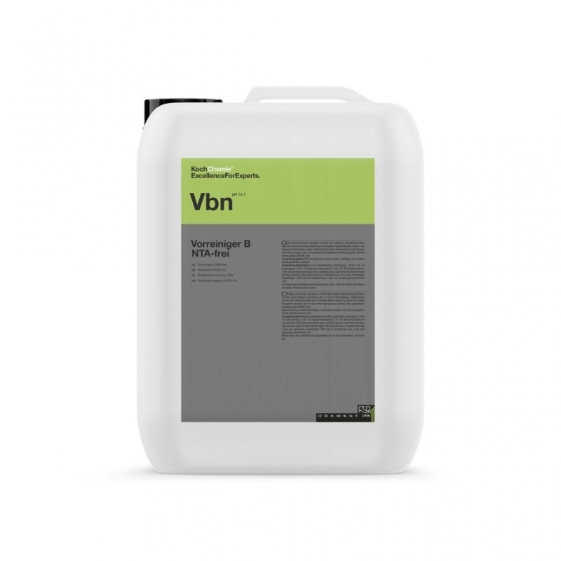 Oblast použití: VORREINIGER bez NTA je vhodný pro bezkontaktní mytí osobních a nákladních vozidel, také pro silně frekventované mycí linky osobních a nákladních vozidel dále pro mytí motorových podvozků, nečisot na ocelových ráfcích a lakovaných hliníkových ráfků, které jsou odolné zásadám a k odstranění kopolymerových vosků.