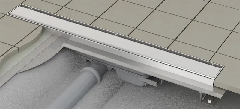 Tento žlab je určen pro vkládání plných roštů. Nerezový okraj tvoří pohledový přechod mezi dlažbou a vloženým roštem. Voda vtéká do žlabu pouze mezi okrajem žlabu a roštem. Umísťuje se do prostoru nebo do blízkosti stěny.