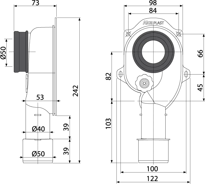 Sifon pisoárový - odsávací svislý DN40/50 ALCA A45C
