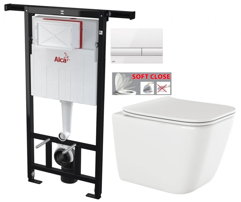 Závěsná klozetová mísa PAROS v jedné rovině se stěnou, bílá se SLIM sedátkem soft-close (CE-90-001-W)