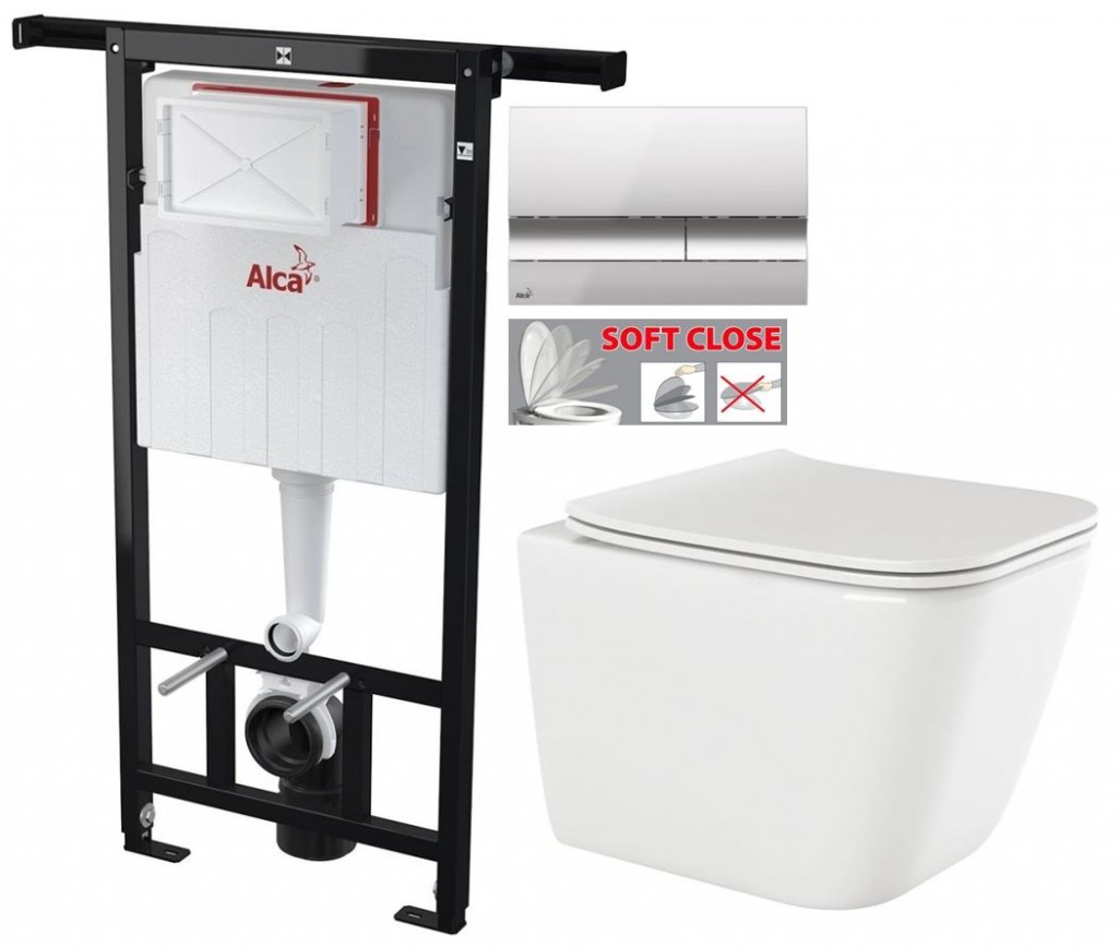 Závěsná klozetová mísa PAROS v jedné rovině se stěnou, bílá se SLIM sedátkem soft-close (CE-90-001-W)