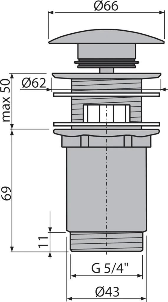 Alcaplast A392-N-P Výpust umyvadlová CLICK/CLACK 5/4" celokovová s přepadem, velká zátka, NICKEL-lesk