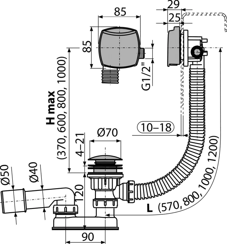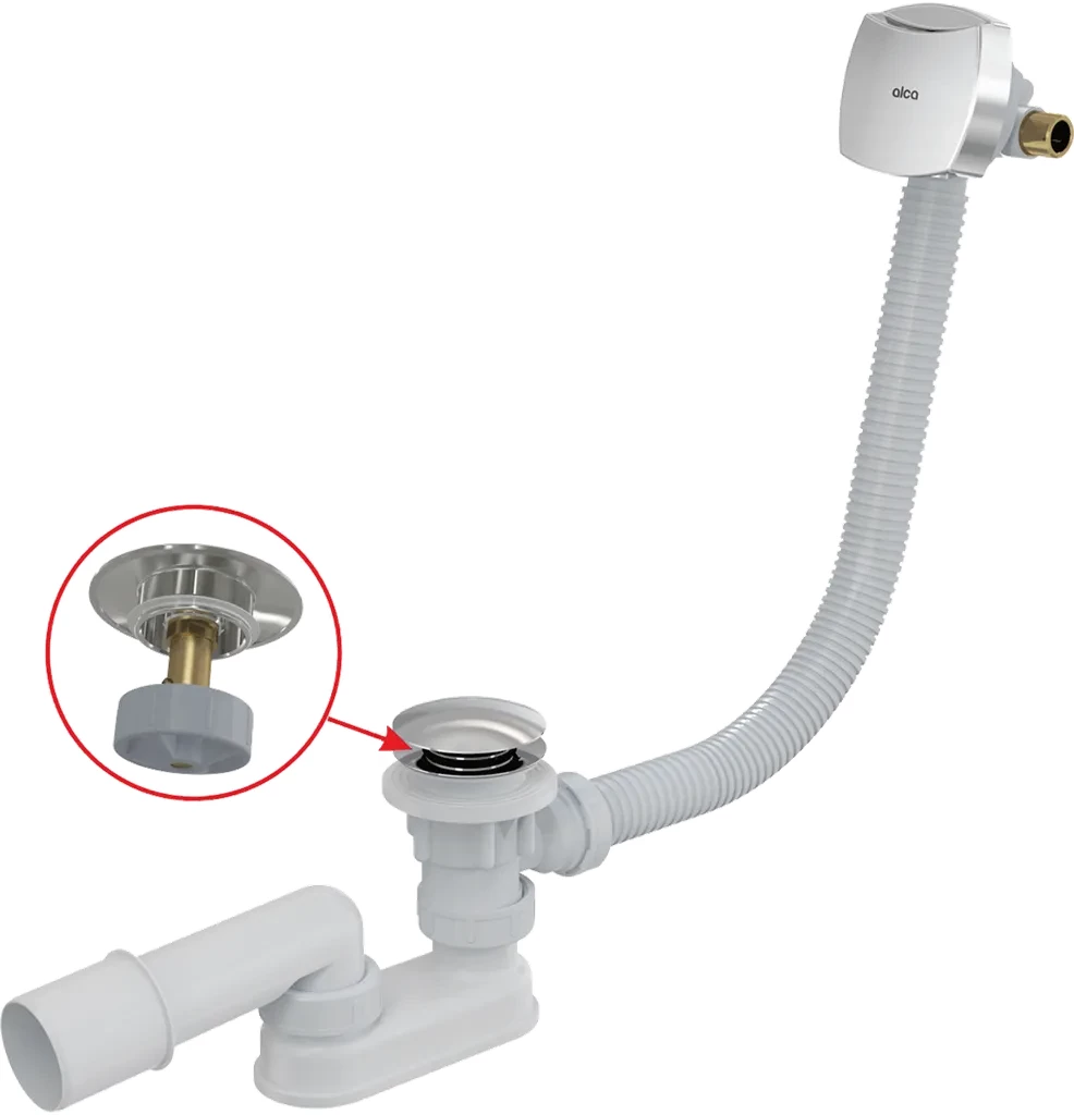 Alcaplast A509CKM-80 Sifon vanový CLICK/CLACK s napouštěním přepadem pro silnostěnné vany, chrom