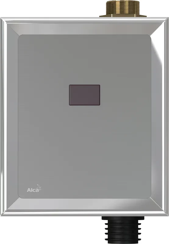 Alcaplast Automatický splachovač WC, chrom, 6 V (napájení z baterie) ASP3-B; Vlastnosti: Napájení z baterií 6V; Odnímatelná krycí deska - kombinace nerez/chromovaný plast; Nastavení přes mini USB pomocí programu volně dostupného na webových stránkách Alcaplast; Nastavitelné parametry: čas začátku a konce registrace, délka spláchnutí, automatické spláchnutí, povolení zavodnění, čas zavodnění, variabilní nastavení hygienického oplachu; Impulsně řízený ventil; Úspora vody pomocí nastavitelné doby spláchnutí; Materiál: ušlechtilá ocel, pochromovaný plast; Použití: Pro automatické splachování WC; Pro instalační rám A114S; Pro zabudování do sádrokartonové konstrukce i k zazdění; Technické parametry: Napájení čidla 5-12 V DC; Odběr (v klidovém stavu při nejnižší rychlosti snímání) 0,3 mA; Výstup max. 800 mA; Vzdálenost snímání 0,15-1,5 m; Vlnová délka zařízení 950 nm; Optimální provozní tlak 0,1-0,5 MPa; Maximální tlak 0,8 MPa; Doba nastavení otevření ventilu 1-30 s; Šroubení G1 "; Rozsah dodávky: Box senzoru z nerezové oceli; Sestava šroubení s elektromagnetickým ventilem; Plastový pochromovaný krycí rámeček; Šablona obkladu; Přísavná podložka pro demontáž krycího plechu; Vodotěsný připojovací konektor napájení; Infrasnímač nastavitelný přes USB port; Fixační materiál pro uchycení krycího rámečku: vrut 3,5x32 - 4 ks; Fixační set pro uchycení boxu na rám: vrut 3,5x16 - 4 ks; Šroubení G1"; Bateriový box pro 4 ks baterií AA 1,5 V