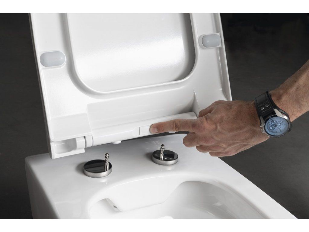 Závěsná WC mísa WC rimless MyJoys MY 2 /bez oplachového kruhu/ včetně sedátka z duroplastu se zavíráním soft-close a instalace /odejmutí sedátka je tzv. na jeden click/. Technologie rimless, na rozdíl od tradičních modelů, nemá vnitřní límec. Oplachovaná voda důkladně umyje celý vnitřní povrch a zanechá jej čistý. V těžko přístupných místech se tak nehromadí nečistoty a bakterie.
