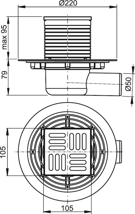 Alcaplast Podlahová vpust 105×105/50 mm boční, mřížka nerez, kombinovaná zápachová uzávěra SMART APV1321; Vlastnosti: Nerezová mřížka 102x102x5 mm; Výškově upravitelné hrdlo 9-95 mm; Široký izolační límec pro napojení na hydroizolaci stavby; Boční napojení na odpad 50 mm; Mechanicky čistitelný sifon až po odpadní trubku; Kombinovaná zápachová uzávěra SMART; Vodní sloupec a mechanická klapka účinněji zabraňují pronikání zápachu z kanalizace; Kompatibilita s dílci podlahových vpustí včetně vodní, suché a kombinované zápachové uzávěry SMART; Materiál: polypropylen odolný proti mechanickému, chemickému a tepelnému poškození; Použití: Pro vnitřní prostory, kde se neočekává časté využití vpusti (prádelny, kotelny, sklepy); Pro odvodnění v úrovni podlahy; Pro bezbariérový přístup; Technické parametry: Průtok s vtokovou mřížkou 37 l/min; Zápachová uzávěra 30 mm; Třída zatížení K3 300 kg; Rozsah dodávky: Tělo vpusti boční 50 mm; Hrdlo vpusti 105x105 mm; Nerezová mřížka; Kombinovaná zápachová uzávěra SMART; Sada těsnění