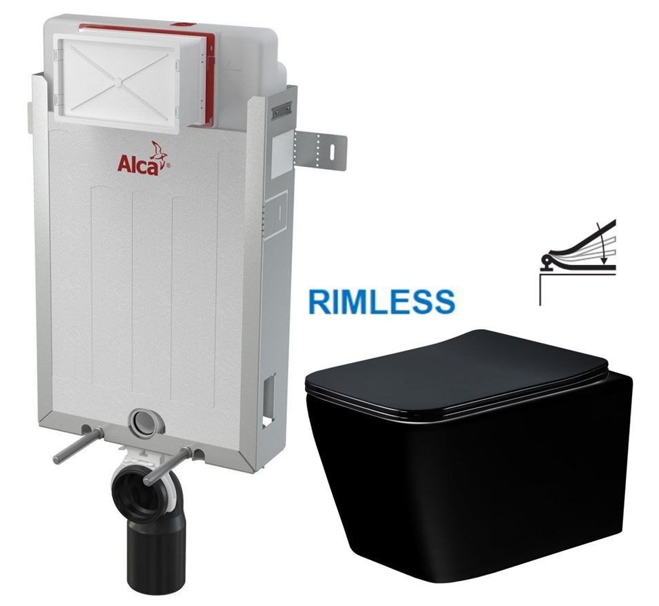WC závěsná mísa TEO Rimless /bez oplachového kruhu/. WC mísa je elegantního vzhledu se zadním odpadem. Díky bez oplachovému kruhu Rimless se nehromadí v límci nečistoty a bakterie, jako je tomu u běžných WC.