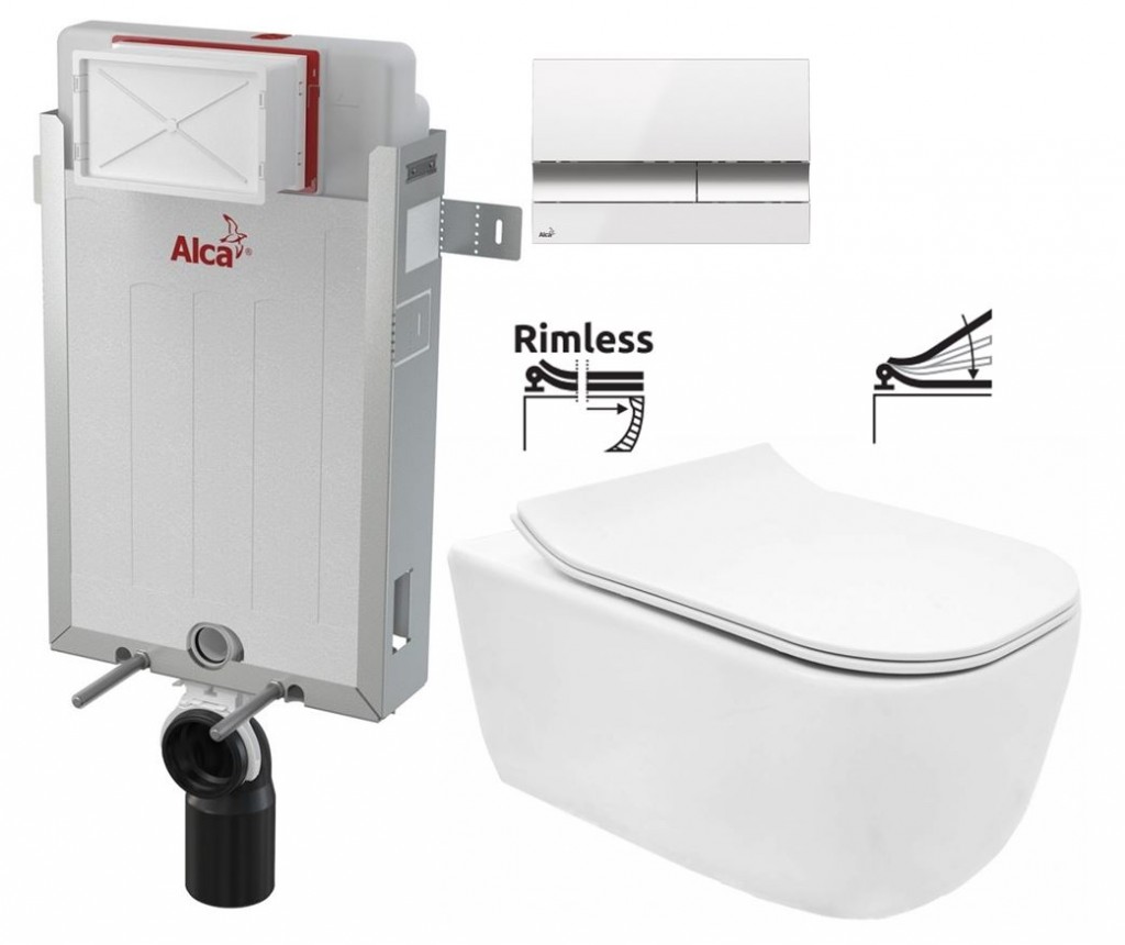ALCADRAIN Renovmodul - předstěnový instalační systém s bílým/ chrom tlačítkem M1720-1 + WC REA Mateo Rimless + SEDÁTKO (AM115/1000 M1720-1 MA1)