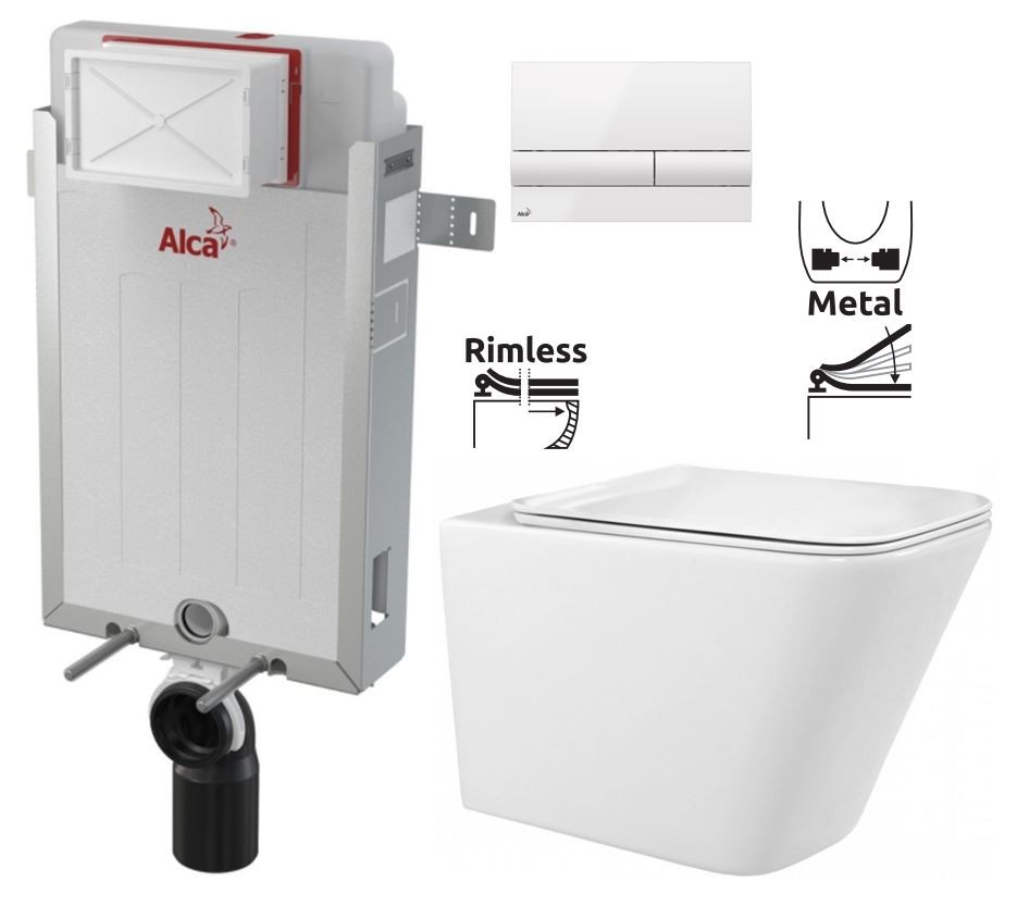 ALCA Renovmodul - předstěnový instalační systém s bílým tlačítkem M1710 + WC REA Raul Rimless + SEDÁTKO (AM115/1000 M1710 RA1)