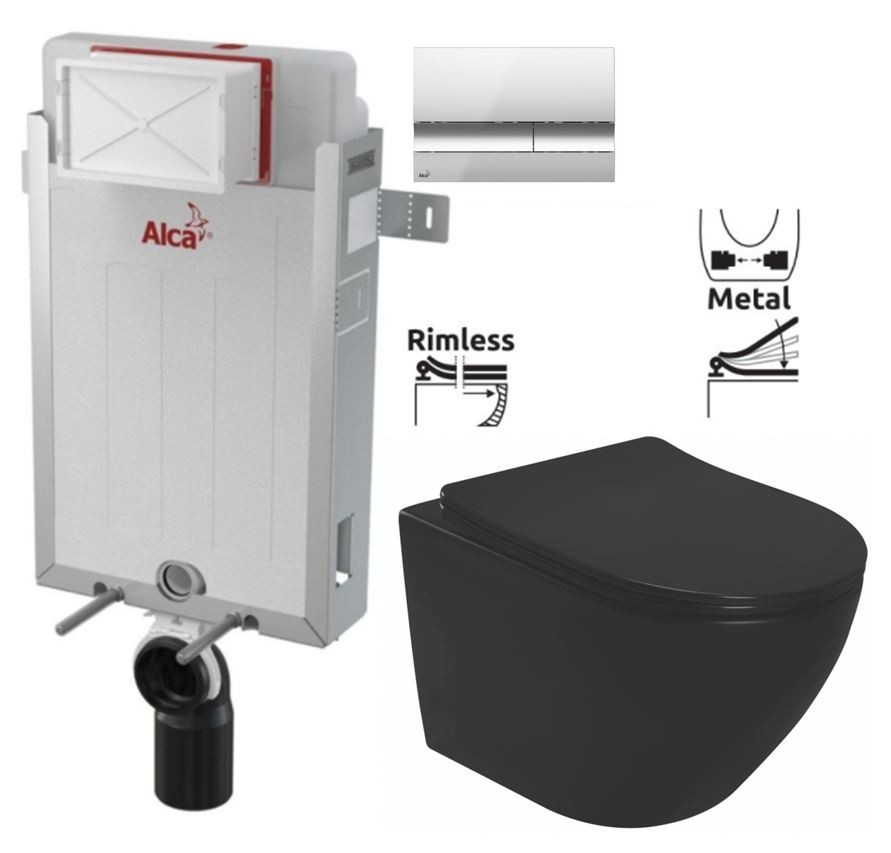 Předstěnový instalační systém s chromovým tlačítkem M1721 + WC REA CARLO MINI RIMLESS ČIERNY MAT + SEDADLO (AM115/1000 M1721 MM1)