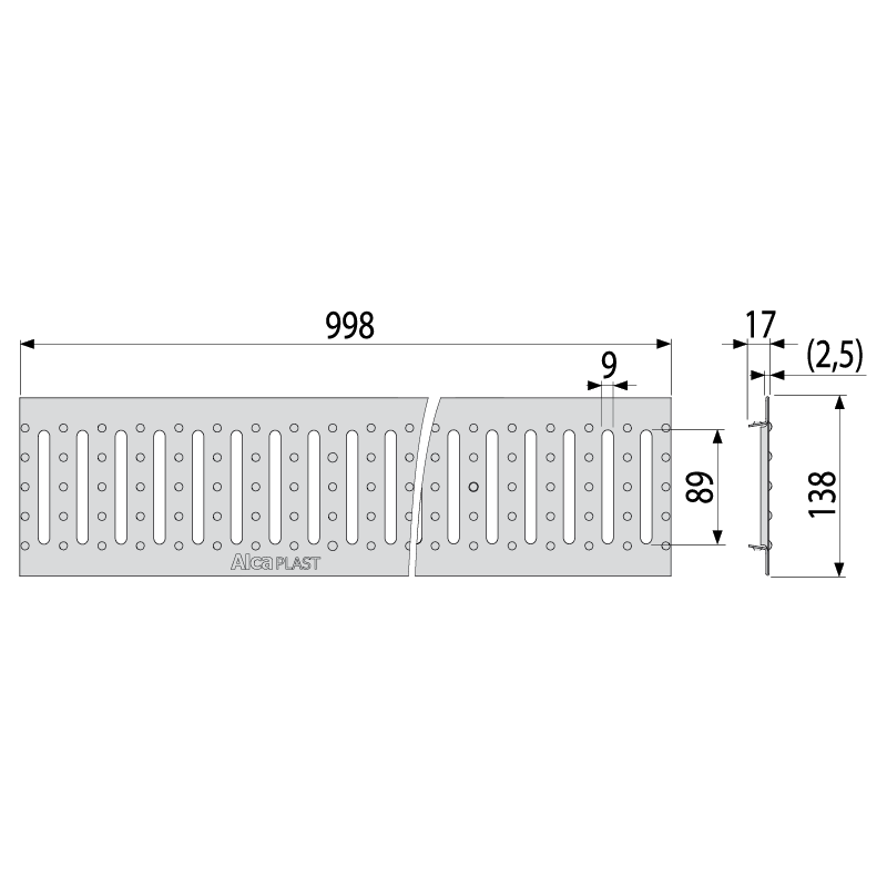 Alcadrain Rošt pro venkovní žlab AVZ101 pozink „T“ profil A15 AVZ-R101; Vlastnosti: Profil roštu „T"; Velikost ok 89x9 mm; Třída zatížení A15; Materiál: pozink; Použití: Pro venkovní žlaby AVZ101; Technické parametry: Třída zatížení A15 1 500 kg; Rozsah dodávky: Rošt