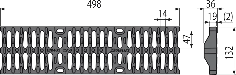 Alcaplast Rošt pro venkovní žlab AVZ103 kompozitní C250 AVZ-R403; Vlastnosti: Zabezpečený v těle žlabu pomocí čtyř nerez šroubů; Velikost ok 47x14 mm; Třída zatížení C250; Materiál: kompozit; Použití: Pro venkovní žlaby AVZ103; Technické parametry: Třída zatížení C250 25000 kg; Rozsah dodávky: Rošt
