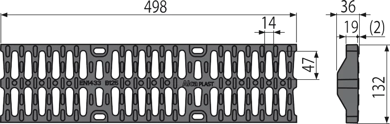 Alcaplast Rošt pro venkovní žlab AVZ104 kompozitní B125 AVZ-R402; Vlastnosti: Zabezpečený v těle žlabu pomocí čtyř nerez šroubů; Velikost ok 47x14 mm; Třída zatížení B125; Materiál: kompozit; Použití: Pro venkovní žlab AVZ104; Technické parametry: Třída zatížení B125 12500 kg; Rozsah dodávky: Rošt