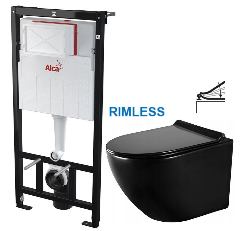 Lena - závěsná WC mísa včetně sedátka s slow-slim, duroplast, černá (30224070)