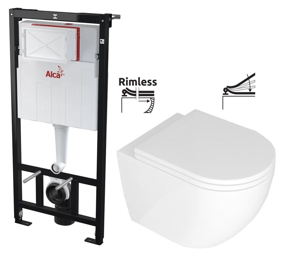 ALCA Sádromodul - předstěnový instalační systém bez tlačítka + WC REA Carlo Mini Basic Rimless + SEDÁTKO (AM101/1120 X CB1)