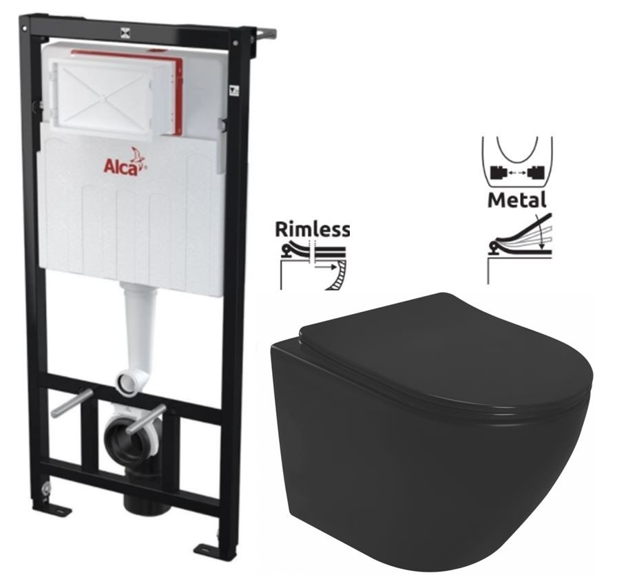 Závěsná WC mísa RIMLESS Carlo Mini Slim černá matná (REA-C8489)