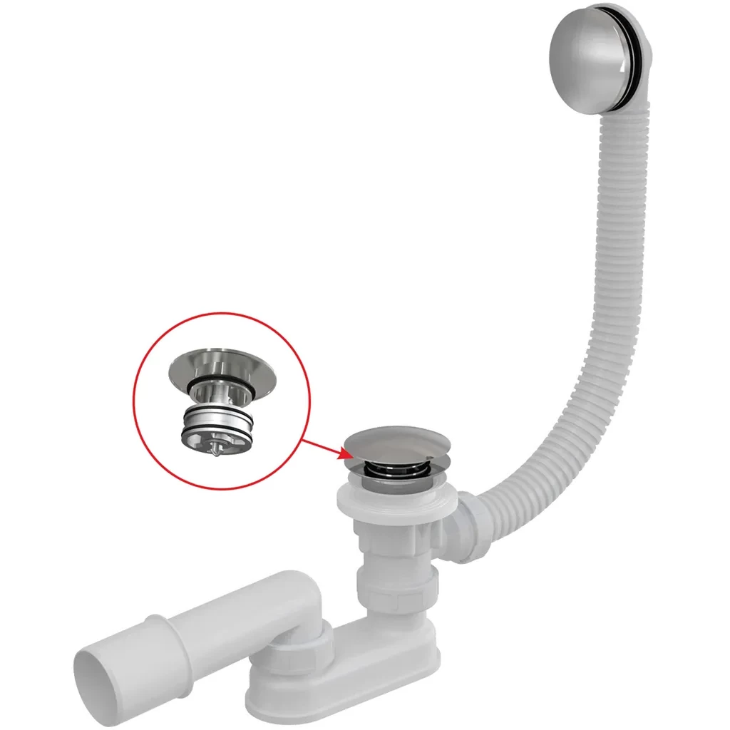 Alcaplast Sifon vanový CLICK/CLACK, kov-chrom čistitelný shora délka 1200mm