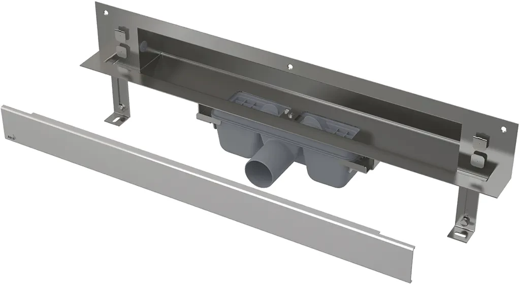 Alcaplast Odtokový systém pro zabudování do stěny, kryt nerez-lesk APZ5-EDEN-650; Vlastnosti: Podlahový žlab z nerezové oceli (zušlechtění materiálu mořením a pasivací, elektrochemické přeleštění); Stavební hloubka 64 mm; Voda vtéká do žlabu pouze mezerou mezi okrajem dlažby a krytem odtokového systému, který je součástí obkladu stěny; Sifon spojen se žlabem - 100% vodotěsnost; Samolepicí páska pro kvalitní hydroizolaci; Mechanicky čistitelný sifon až po odpadní trubku; Lehce vyjímatelný kryt - nerez lesk; Límec a vpust jsou chráněny fólií, vanička polystyrenovou vložkou; Vysoký průtok je umožněn díky dvěma komorám sifonu; Možnost objednat s LED podsvícením; Systém je umístěn mimo oblast mechanického namáhání; Možnost dokoupení kombinované zápachové uzávěry; Záruka 25 let; Materiál žlabu: nerezová ocel AISI 304, DIN 1.4301, ČSN 17240; Materiál sifonu: polypropylen; Použití: Pro použití uvnitř budov; Vhodný pro prostory s pohybem vyššího počtu osob - bazény, lázně, wellness centra; Pro osazení do stěny; Pro bezbariérový přístup; Technické parametry: Zápachová uzávěra 50 mm; Průtok 60-68,8 l/min; Odolnost zápachové uzávěry proti tlaku 982 Pa; Odpadní potrubí průměr 50 mm; Celková stavební výška 60 mm; Stavební hloubka 85 mm; Rozsah dodávky: Žlab smontovaný se sifonem; Kotvící set: vrut 6x50 - 2 ks, hmoždinka 10 - 2 ks, vrut 4,2x38 - 3 ks, hmoždinka 8 - 3 ks; Samolepicí hydroizolační páska; Ochranná fólie límce žlabu a vtoku do sifonu; Instalační kryt koryta; Nerezový designový rošt EDEN lesk; Fixační materiál pro uchycení stavitelných noh: šroub M6x12 - 2 ks