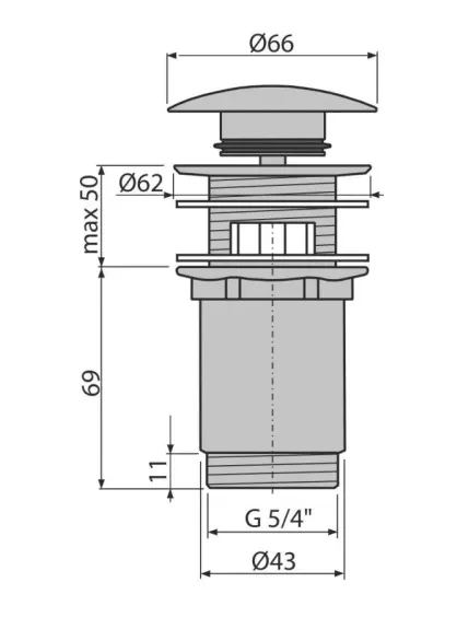 Alcaplast Sifonová vpusť 5/4" click clack velká zátka čistitelná shora, celokovová s přepadem A392C