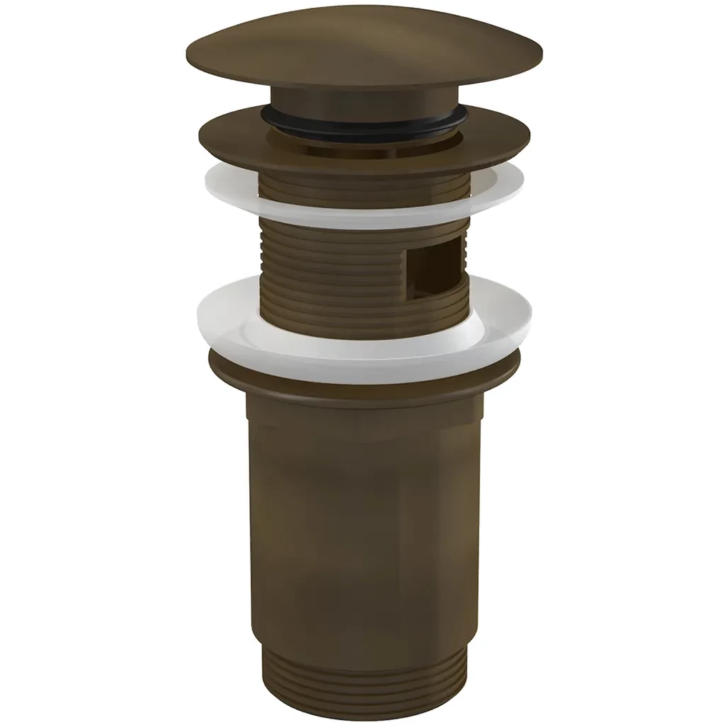 Alcaplast Výpust umyvadlová CLICK/CLACK 5/4" celokovová s přepadem, velká zátka, bronz-antic A392ANTIC; Vlastnosti: Závit pro připojení k umyvadlovému sifonu 5/4"; Povrch je odolný proti mechanickému poškození; Dlouhá životnost mechanismu CLICK/CLACK; Materiál: mosaz s pohledovou povrchovou úpravou bronz-antic; Použití: Pro umyvadla s přepadem; Technické parametry: Závit 5/4 "; Rozsah dodávky: Tělo výpusti; Zátka s pohledovou povrchovou úpravou bronz-antic; Silikonové těsnění 2 ks