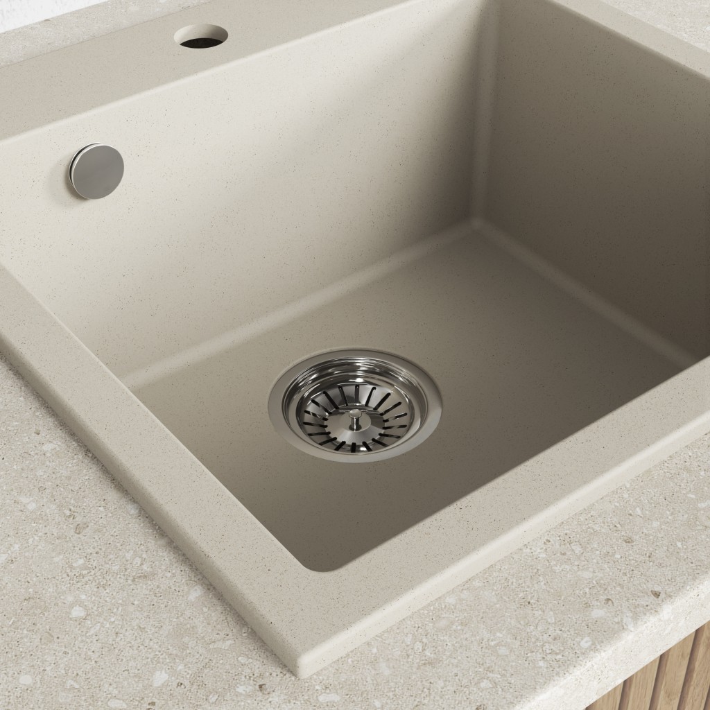 Malé, hranaté žulové dřezy Alena jsou skvělým řešením pro malé kuchyně. Tam, kde je každý centimetr důležitý, zvažte polský dřez Laveo o rozměrech 49x49 cm. Disponuje funkční, hlubokou (20 cm) mísou a rychlým a snadným odtokem typu click-clack. Sada obsahuje prostorově úsporný odtok s připojením na myčku nádobí. Dřez je vyroben z vysoce kvalitní žuly a je dodáván s 10letou zárukou výrobce. Díky materiálu je dřez odolný vůči poškrábání, tepelným šokům a vysokým teplotám. Dřez je k dispozici ve čtyřech moderních povrchových úpravách: bílé, béžové, šedé a černé, což vám umožní sladit jej se zvoleným stylem kuchyně.