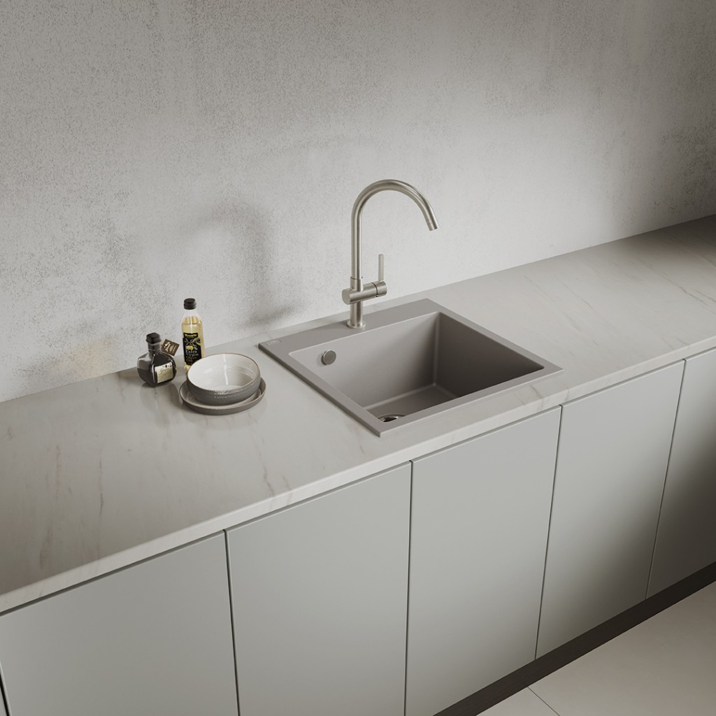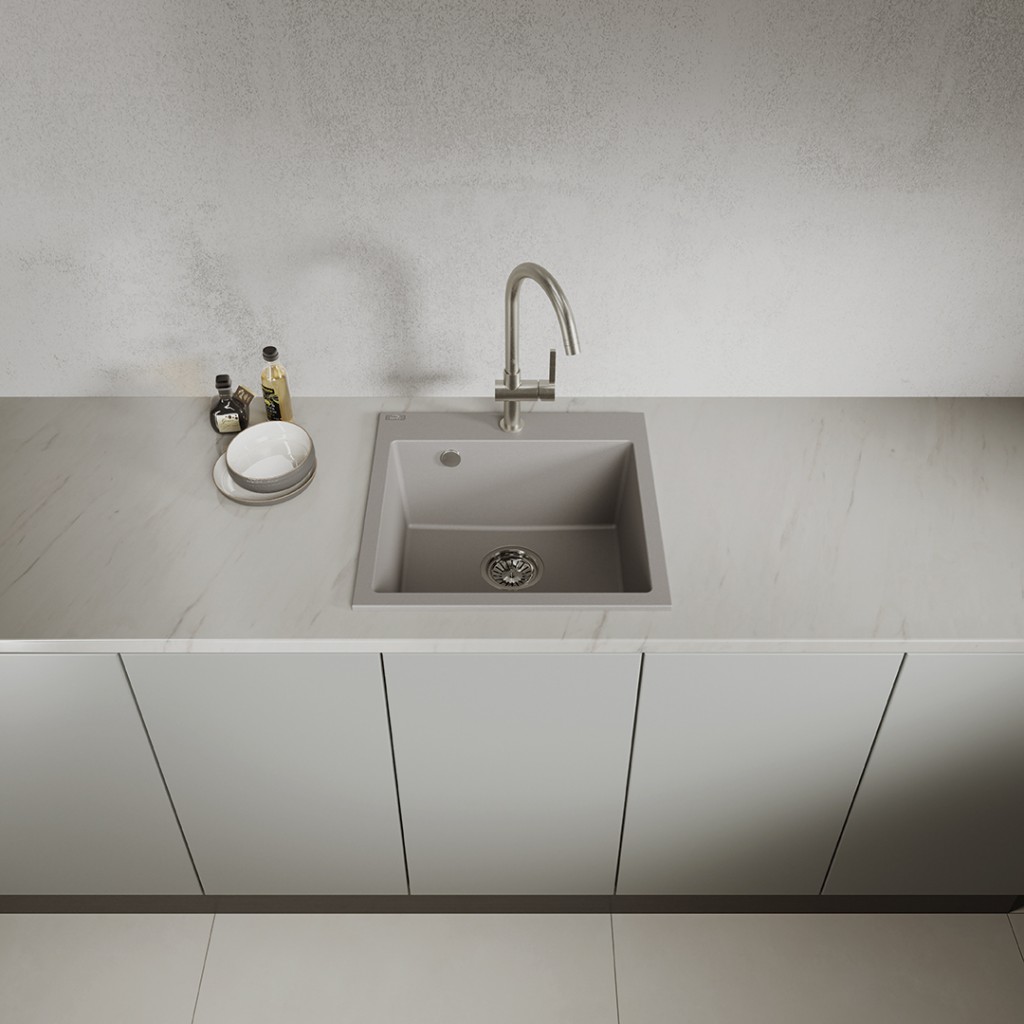Malé, hranaté žulové dřezy Alena jsou skvělým řešením pro malé kuchyně. Tam, kde je každý centimetr důležitý, zvažte polský dřez Laveo o rozměrech 49x49 cm. Disponuje funkční, hlubokou (20 cm) mísou a rychlým a snadným odtokem typu click-clack. Sada obsahuje prostorově úsporný odtok s připojením na myčku nádobí. Dřez je vyroben z vysoce kvalitní žuly a je dodáván s 10letou zárukou výrobce. Díky materiálu je dřez odolný vůči poškrábání, tepelným šokům a vysokým teplotám. Dřez je k dispozici ve čtyřech moderních povrchových úpravách: bílé, béžové, šedé a černé, což vám umožní sladit jej se zvoleným stylem kuchyně.