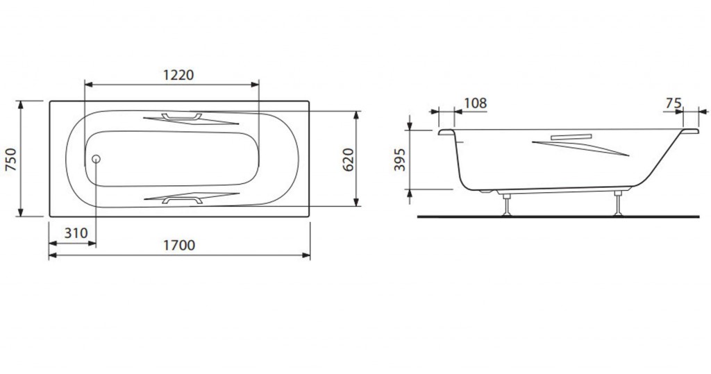 - rozměry: délka 1700 mm, šířka 750 mm, výška 395 mm