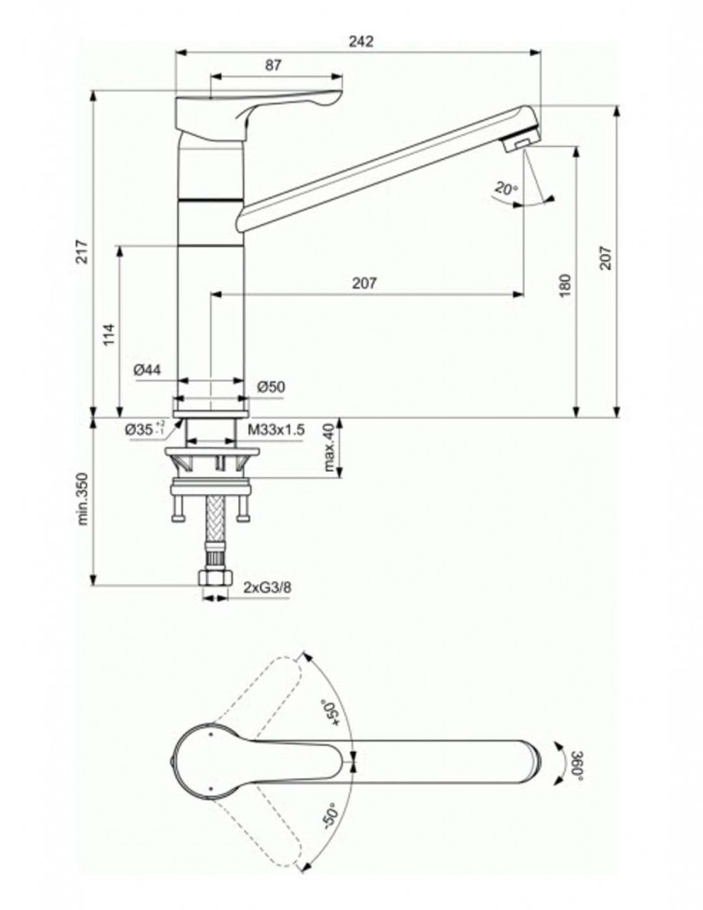- keramická kartuše 35 mm s omezovačem teplé vody