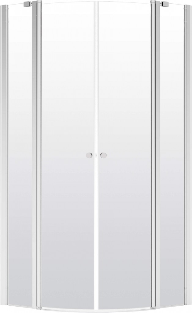 Sprchový čtvrtkruhový kout ALPINA s křídlovými dveřmi, výšky 1950 mm. Jako výplň je použito transparentní sklo o síle 6 mm, které je podrobeno procesem kalení, kdy se