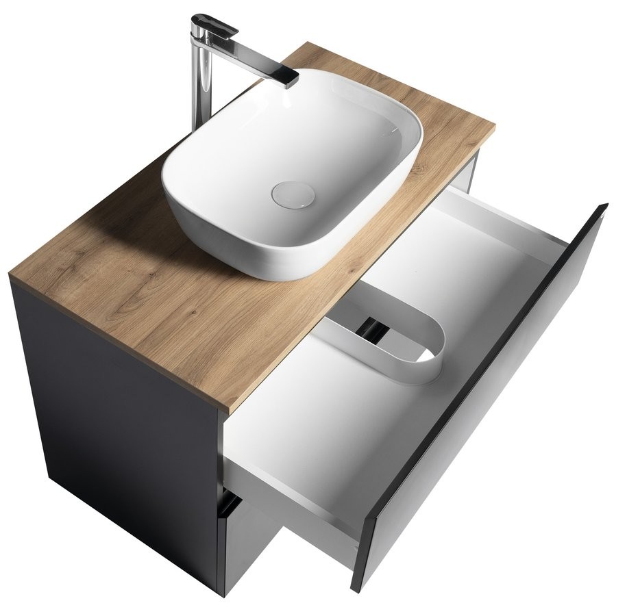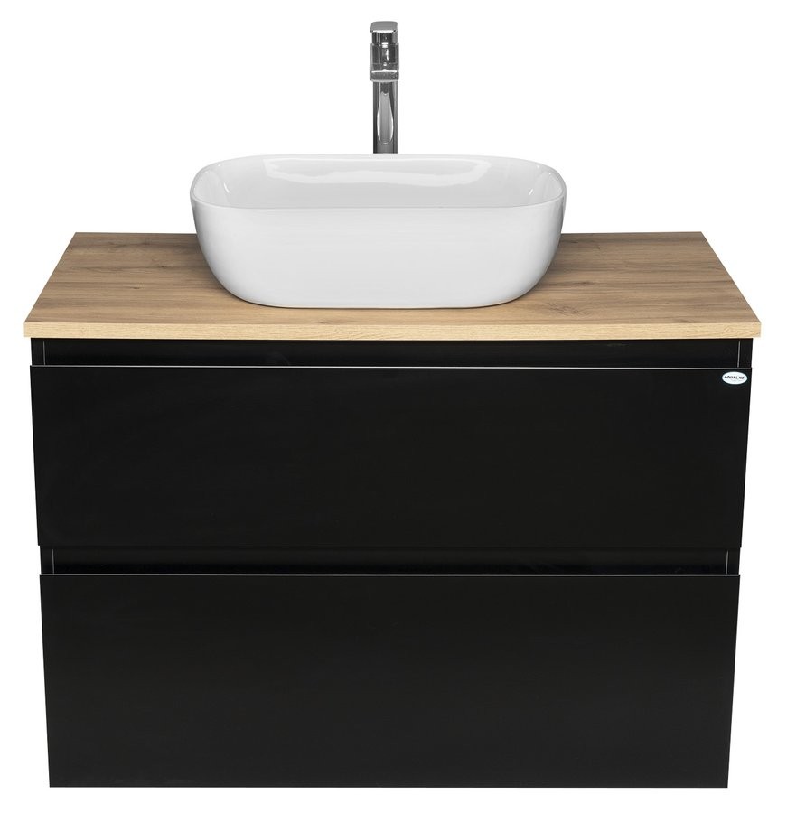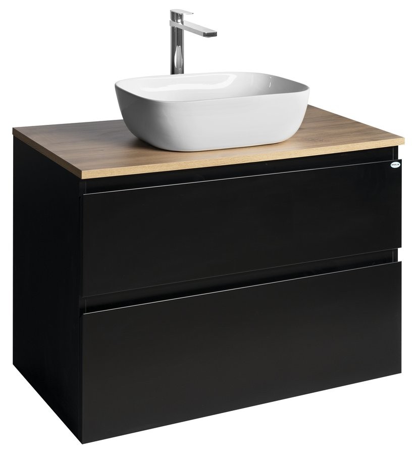 AQUALINE - ALTAIR skříňka s deskou 87,5 cm, černá mat/dub emporio (AI690-01)