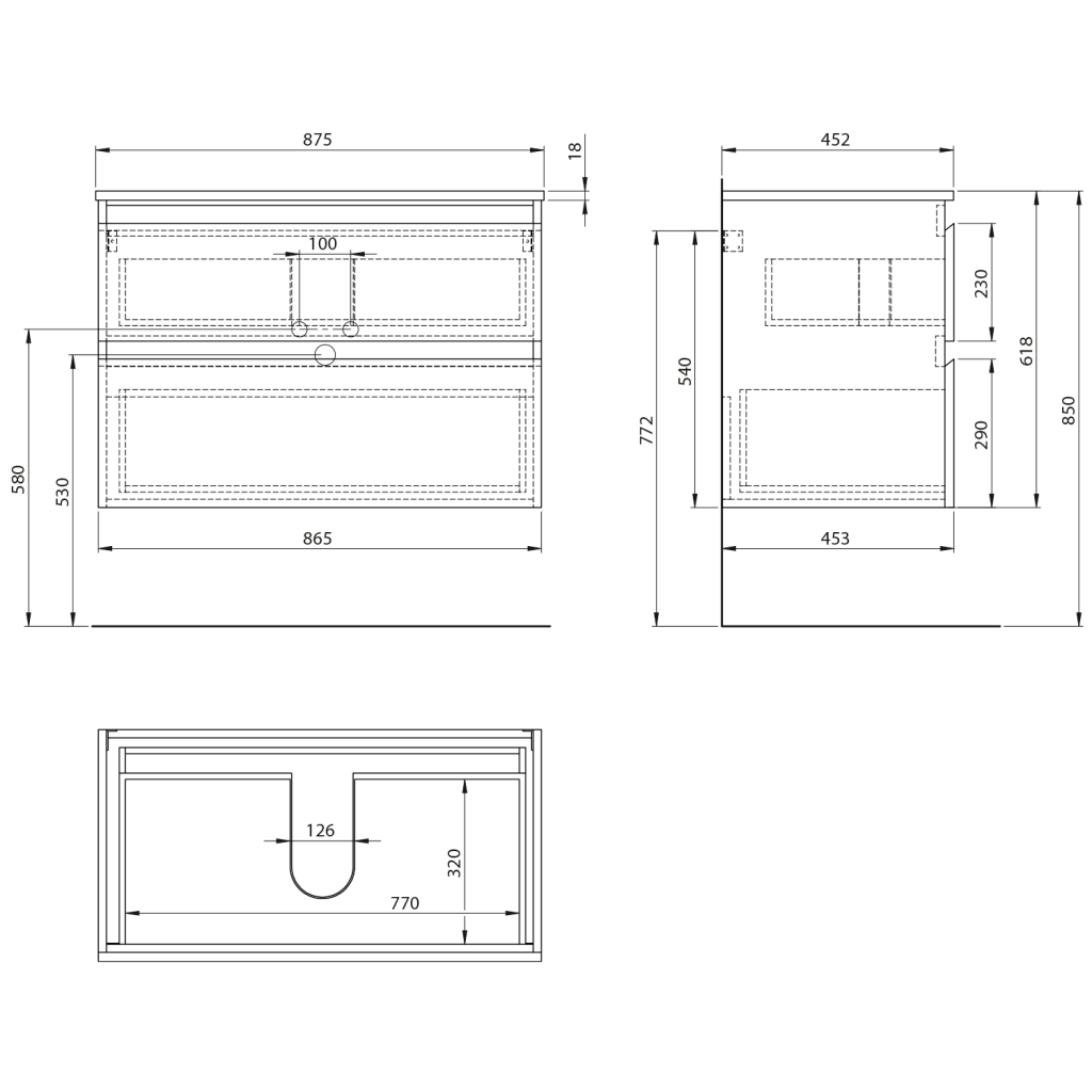 AQUALINE - ALTAIR umyvadlová skříňka 86,5x60x45cm, černá mat (AI690)