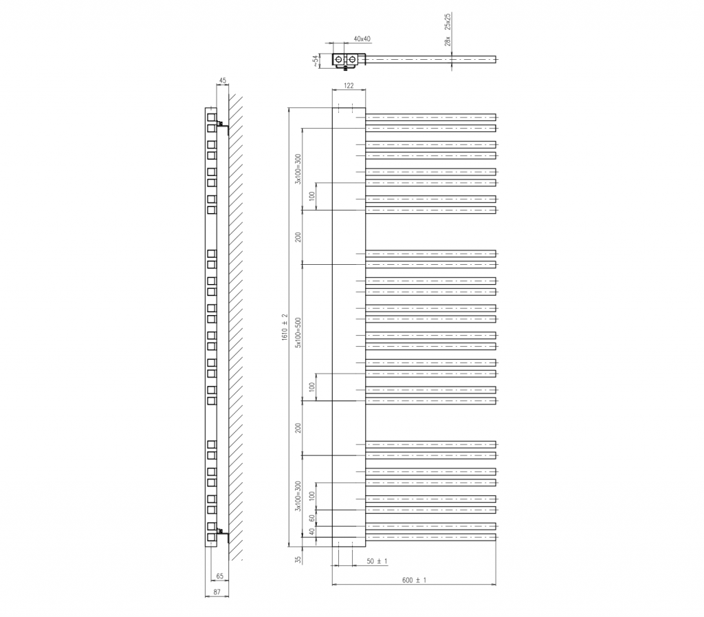 Topení s jednobodovým připojenímRadiátor je nejen zdrojem tepla, ale i designovým prvkem ve Vaší koupelně. Zároveň je velmi praktický na sušení ručníků a údržbu. Středové připojení s roztečí 50 mm. Radiátor lze zavěsit oboustranně.