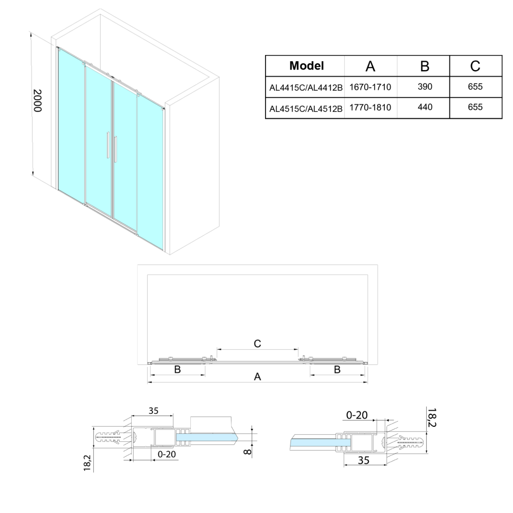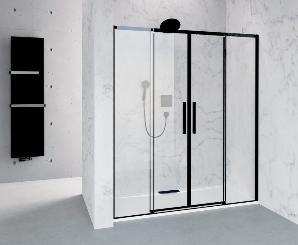 - Dveře jsou děleny na část posuvnou a část pevnou - umožňují variabilní instalaci s levým nebo pravým otevíráním.