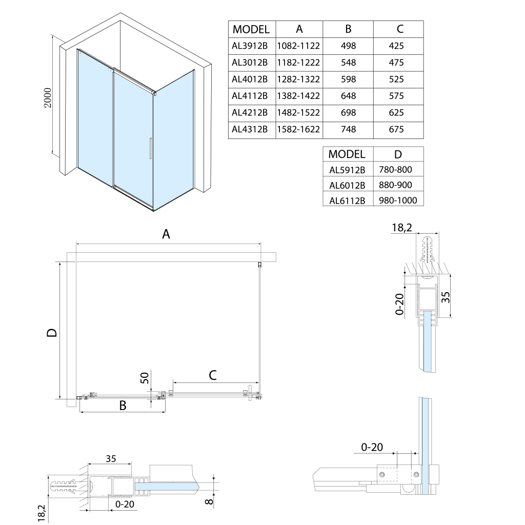 - Dveře jsou děleny na část posuvnou a část pevnou - umožňují variabilní instalaci s levým nebo pravým otevíráním.