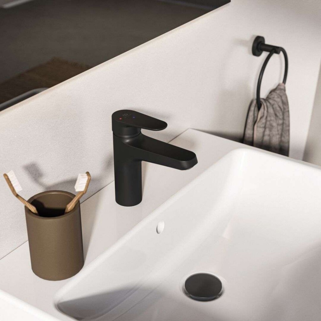- BlueStart - ovládací páka je ve středové poloze a teče pouze studená voda, otáčením doleva přidáváme teplou vodu
