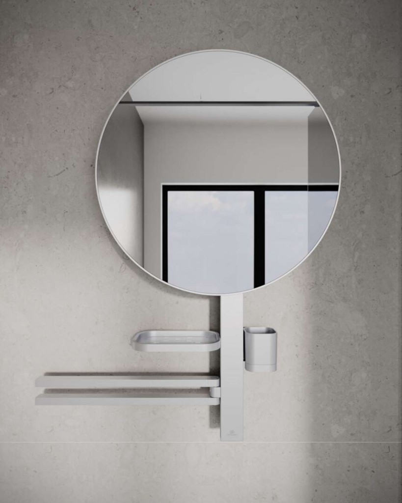 Koupelnové zrcadlo na tyči s příslušenstvím