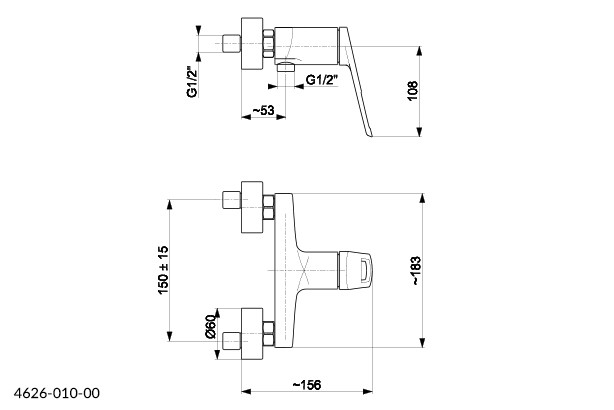 Nástěnná sprchová baterie AMAZONIT od výrobce KFA ARMATURA s roztečí 150 mm bez příslušenství.