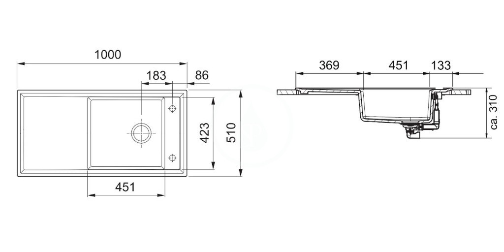- rozměr dřezu 451 x 423 mm