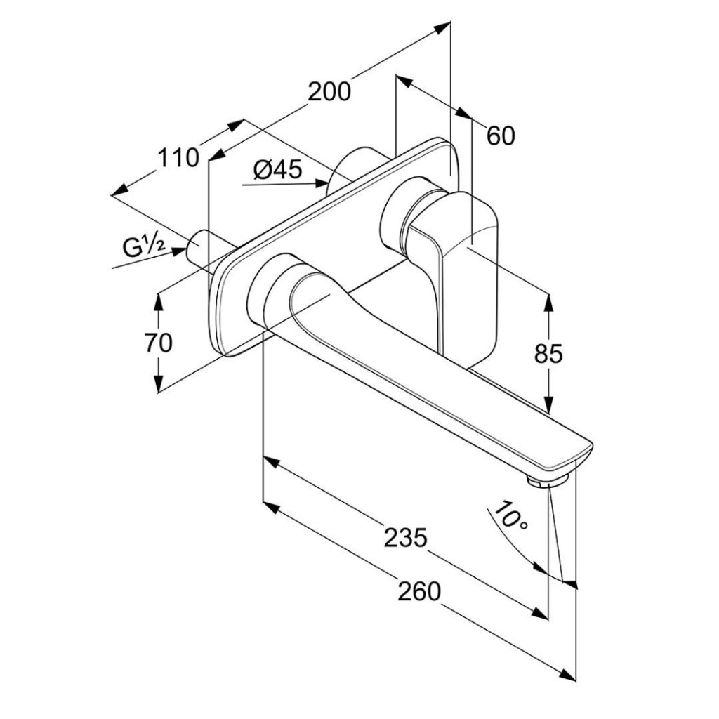 Podomítková páková umyvadlová baterie se dvouotvorovou instalací