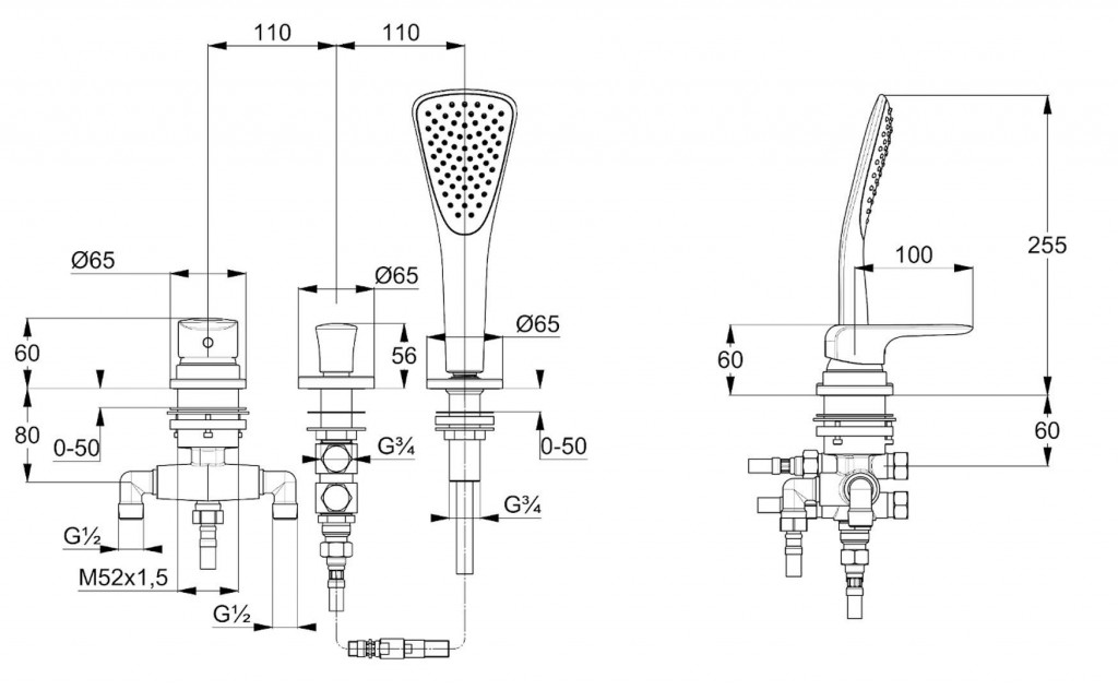 - montáž na základní těleso pro baterii na okraj vany, není součástí balení