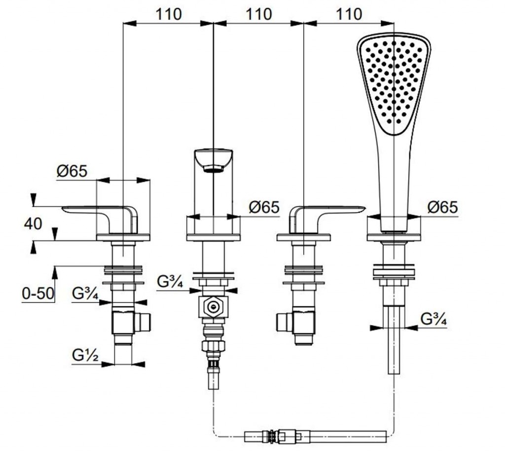 Baterie na okraj vany Ameo, 4-otvorová instalace